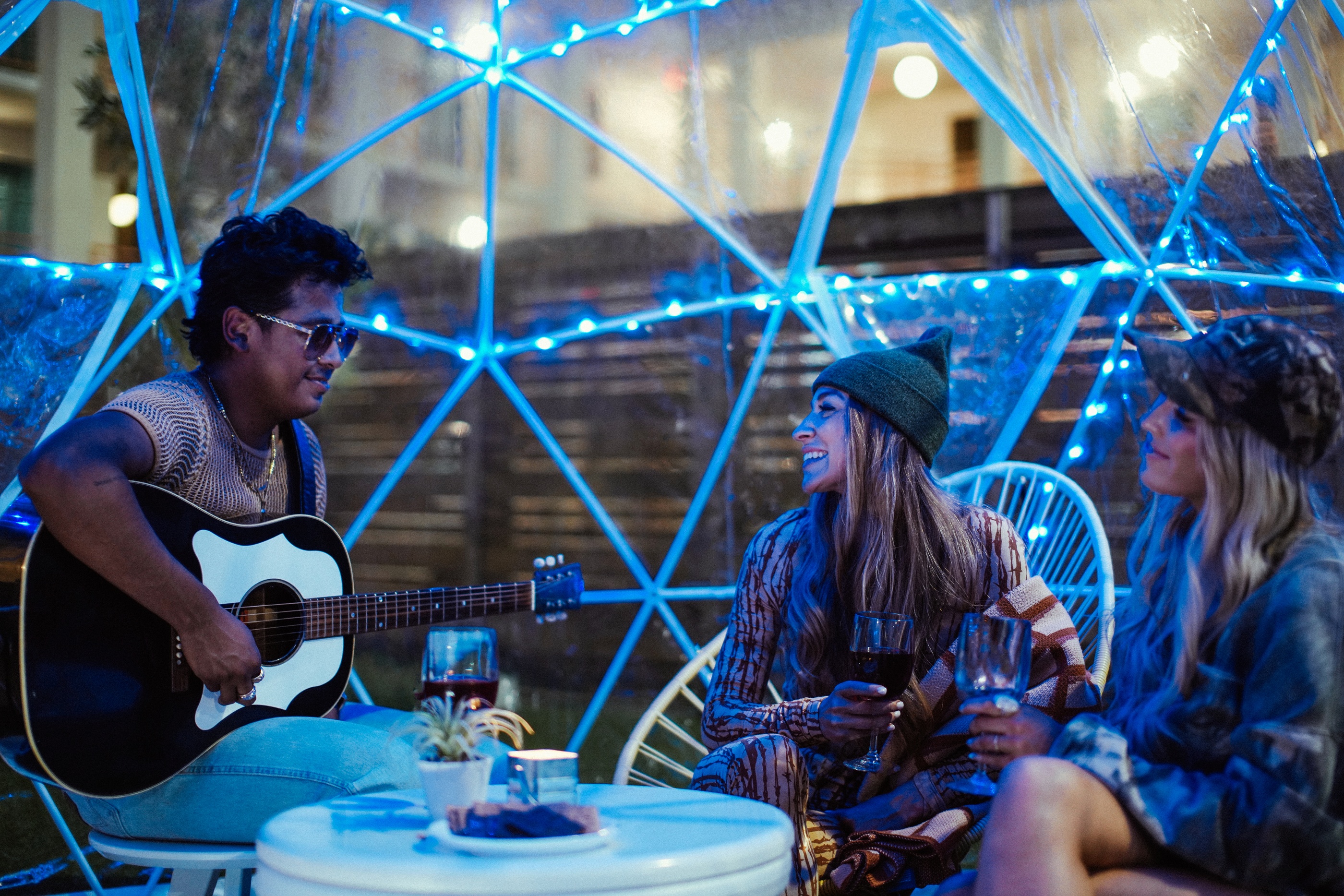 Get cozy in a lighted igloo poolside at The Swim Club.